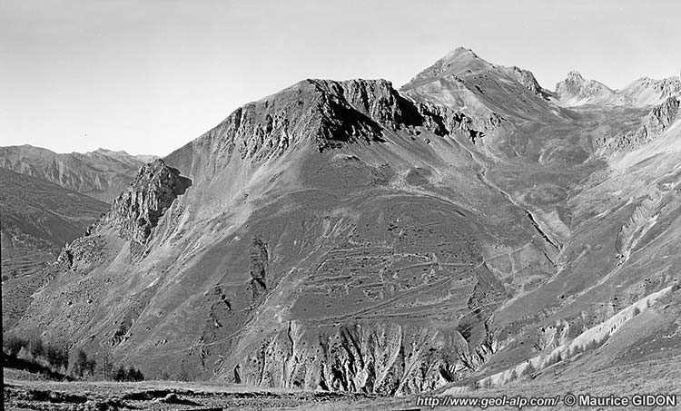 En effet on voit sans ambiguité, à flanc des pentes de rive droite du ravin de Servagno, que le matériel subbriançonnais s'enfonce vers l'ouest sous la plus basse des unités briançonnaises (celle de Rocca Peroni).
