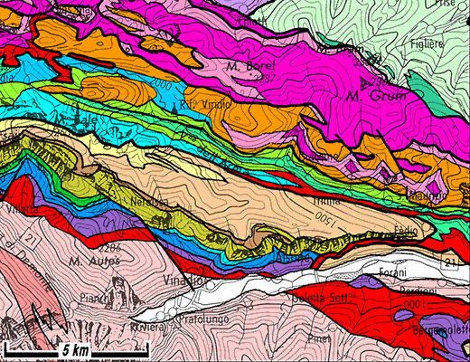 longitudinal (faille de la Cima di Test et du Gias Viridio superiore).