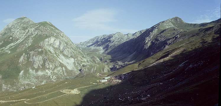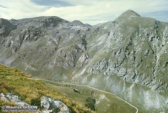Le débouché aval du Valcavera, entre Monte Omo et Monte Parvo, vu du sud-est depuis les pentes méridionales du Gias Viridio.