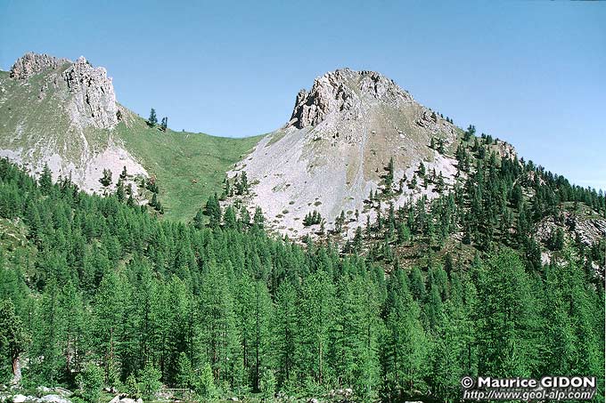 Ce bas versant occidental de la vallée du Mélezet est formé assez uniformément par les calcschistes de la bande de Ceillac, mais il y pointe à mi-pente un chapelet d'affleurements jurassiques : leur présence témoigne de l'existence d'imbrications tectoniques au sein de cette unité. Enfin le sommet de ces pentes est couronné, à la Croix du Signal, par une unité renversée dont tout (position dans l'édifice et succession stratigraphique) indique qu'elle est le prolongement de la nappe de la Clapière (voir commentaires complémentaires à la page Ceillac).