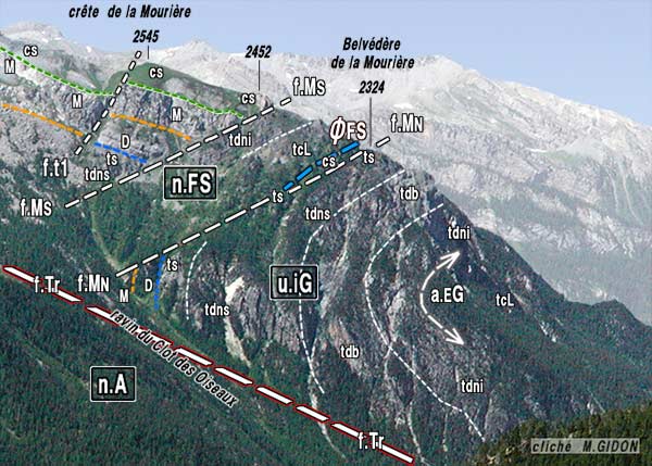 ainsi que les failles plus mineures de la crête de la Mourière,