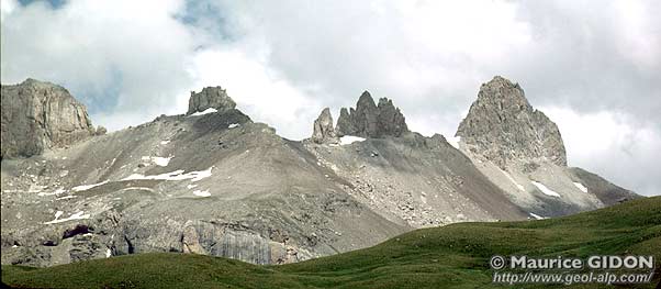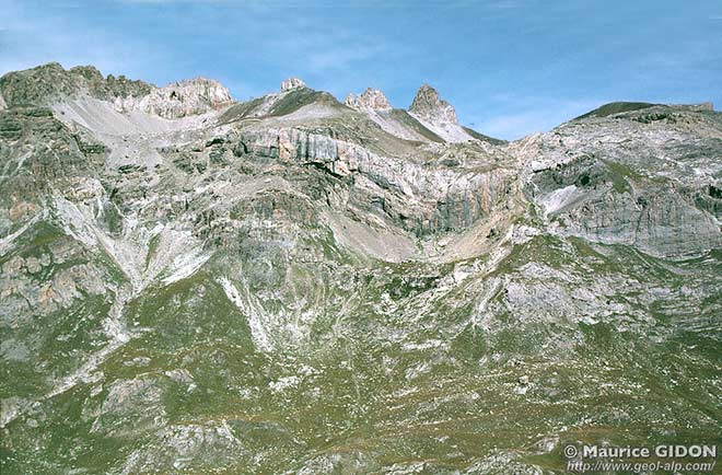 Il ne constitue d'ailleurs que la plus grosse des trois klippes d'un chapelet qui couronne l'extrémité méridionale de la Crête de Vallon Laugier : en fait cette dissociation du matériel de la nappe de Peyre Haute correspond à ses affleurement les plus sud-orientaux, au delà desquels elle disparaît ainsi, "dans le ciel", enlevée par l'érosion.
