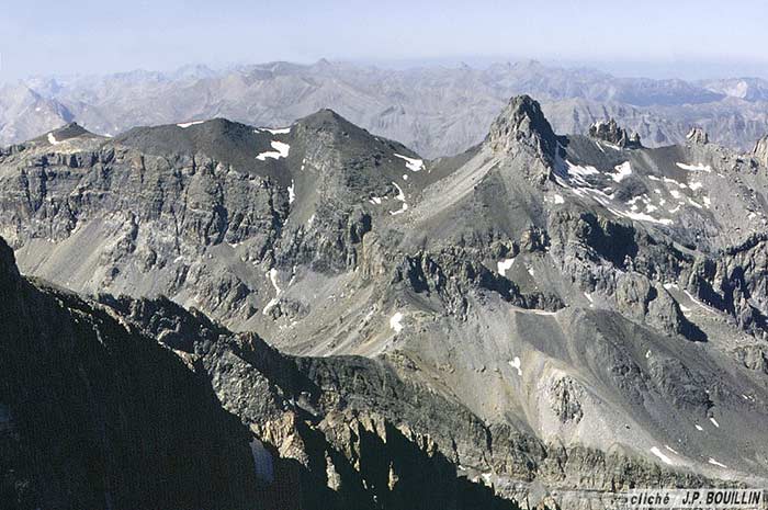 Le versant oriental du Pic des Houerts, vu du nord-est, depuis le sommet de la Font-Sancte (cliché original obligeamment communiqué par M. Jean-Pierre Bouillin).