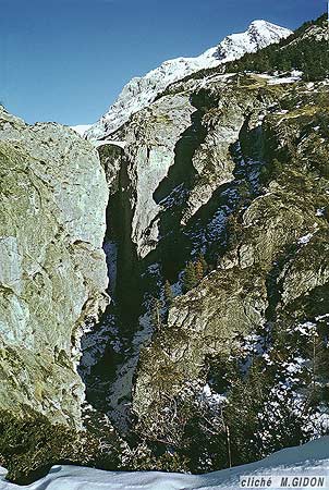 Entre les villages de Maurin, en amont, et celui de Grande Serenne, en aval, l'Ubaye traverse la majeure partie de la zone briançonnaise en y pratiquant une gorge, d'une longueur environ 8 km, dominée des deux côtés par des versants rocheux qui sont couronnés de hautes crêtes avoisinant ou dépassant 3000 m d'altitude.