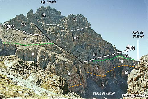 Le repli anticlinal du soubassement de la klippe de l'Aiguille Grande correspond à l'anticlinal de l'Aiguille de Chillol.