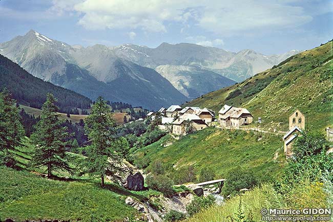 Le village de Fouillouse, vu du sud-est (d'amont), en direction de la vallée de l'Ubaye |