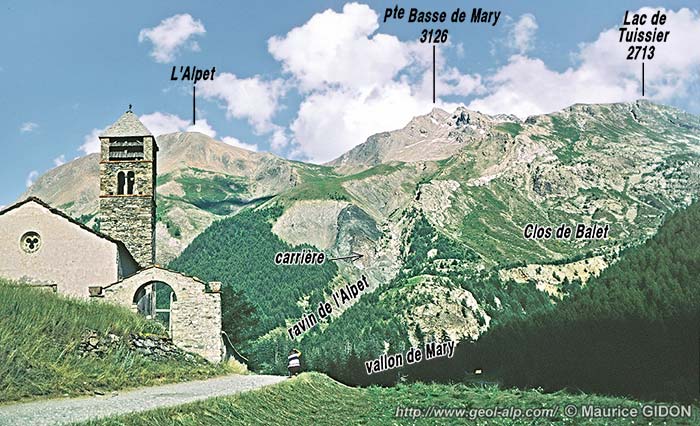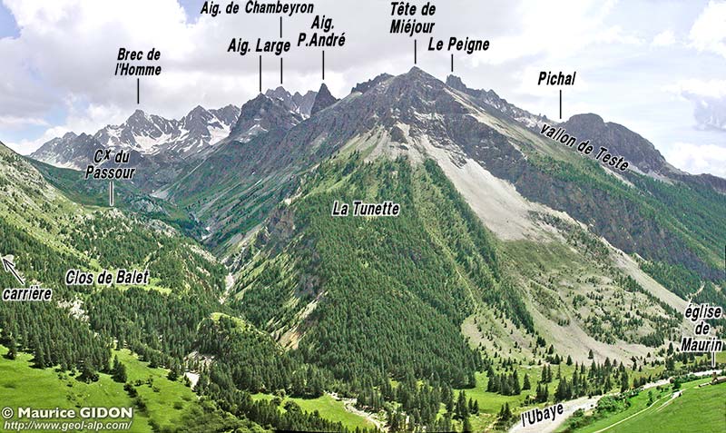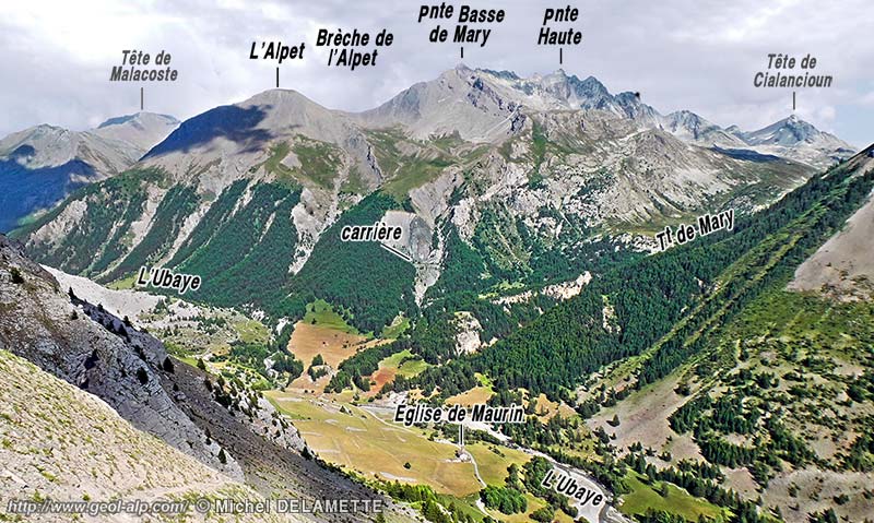 La vallée de l'Ubaye s'ouvre en rive gauche, à la hauteur des villages de Maurin, par le débouché du bas vallon de Mary. C'est sur cette transversale à la vallée de l'Ubaye, entre les deux sommets de l'Alpet à l'est et de la Tête de Miéjour à l'ouest, que le lit de cette rivière quitte le domaine liguro-piémontais (dit "des schistes lustrés") pour entrer, vers l'aval, dans celui de la zone briançonnaise.