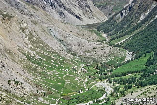 de glissement qui a obstrué le cours de l'Ubaye en amont de Combe Brémond et créé l'ancien lac de Parouart. Sa niche d'arrachement, garnie