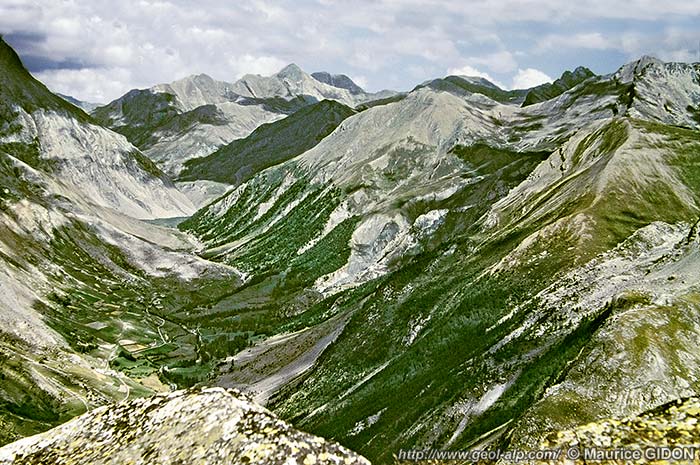 La vallée de l'Ubaye en amont de Maljasset, vue du SW depuis la Tête du Seingle.