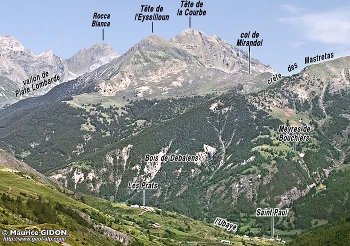 Au premier abord cette situation structurale saillante pourrait même faire croire que ce matériel briançonnais constitue une klippe*, comparable à celle de l'unité du Brec, chapeautant ces flyschs. En fait les couches briançonnaises y décrivent un bombement anticlinal et plongent, vers le nord-ouest, sous les flyschs du versant de rive gauche de l'Ubaye.