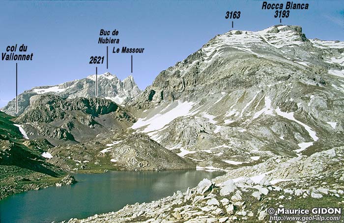 redessinée sur la base de la carte géologique d'ensemble des Alpes occidentales, du Léman à Digne, au 1/250.000°", par M. Gidon (1977), publication n° 074