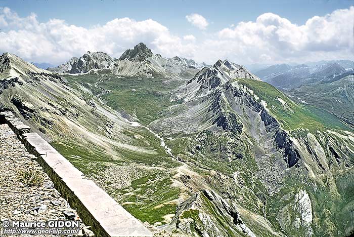 - le vallon supérieur, très ouvert et garni d'alpages, est installé sur les couches peu inclinées de la voûte de l'anticlinal du Rouchouse et le fond de la dépression suit assez exactement le tracé de la faille du Ruburent.