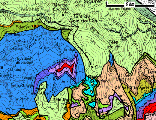 Carte géologique simplifiée des montagnes de rive gauche de l'Ubayette