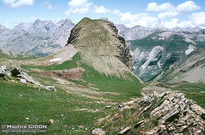 de la nappe du Parpaillon, mais on observe beaucoup moins de plis transverses à la crête que plus au NW, au delà du Pas de Terre Rouge (page "Siguret")
