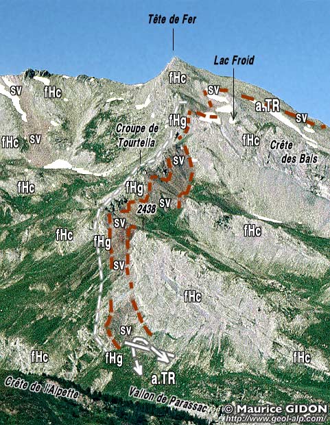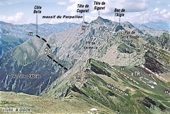 de l'anticlinal de Terre Rouge (a.TR) a lieu du côté NW, dans la paroi sud-ouest