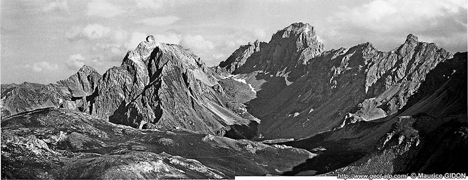 Au nord du sommet la crête principale est déchiquetée par le chapelet des Aiguilles d'Orrenaye, qui se font remarquer par leur relief typiquement dolomitique.