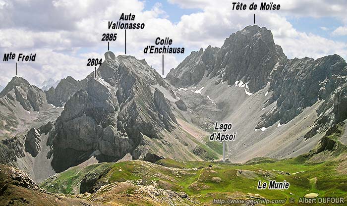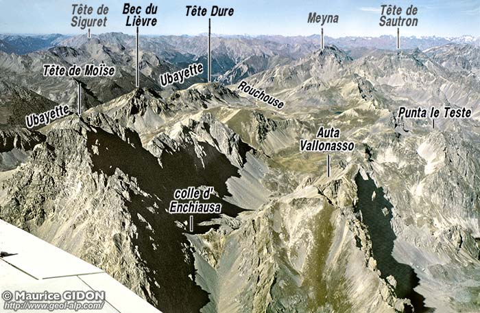 Sur le revers nord-est de la crête de la Tête de Moïse (du côté italien, donc) la limite de la klippe qui la constitue ne se limite pas au pied des abrupts orientaux de la crête. Elle englobe aussi la partie occidentale de la crête parallèle qui culmine au sommet de l'Auta Vallonasso.