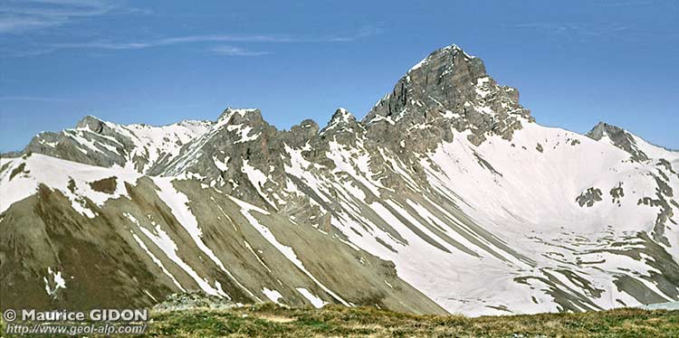![]() La Tête de Moïse vue du sud depuis le col du Ruburent. |