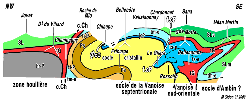 - n.MM = nappe "médiane" (à faciès schisteux) de Méan Martin etc... ;
