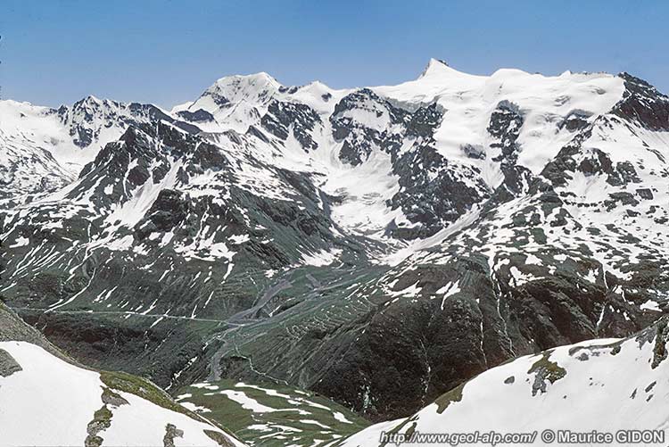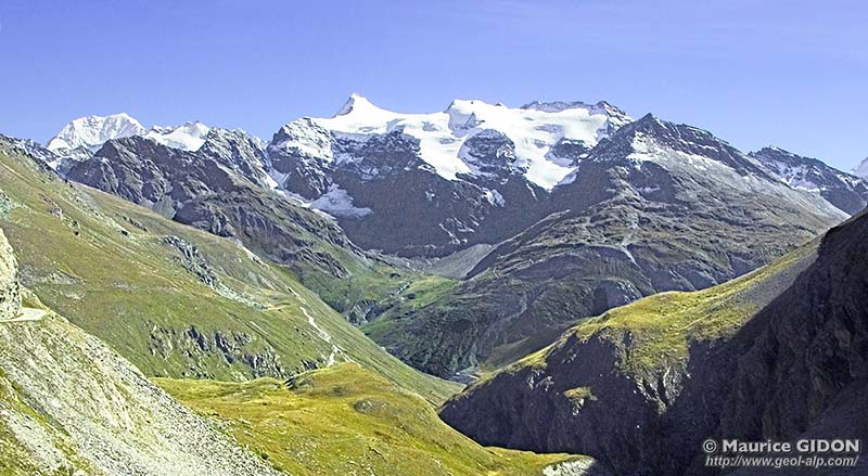moulant sur le flanc du vaste bombement de socle du Grand Paradis. Il en résulte que sa surface supérieure rejoint bientôt