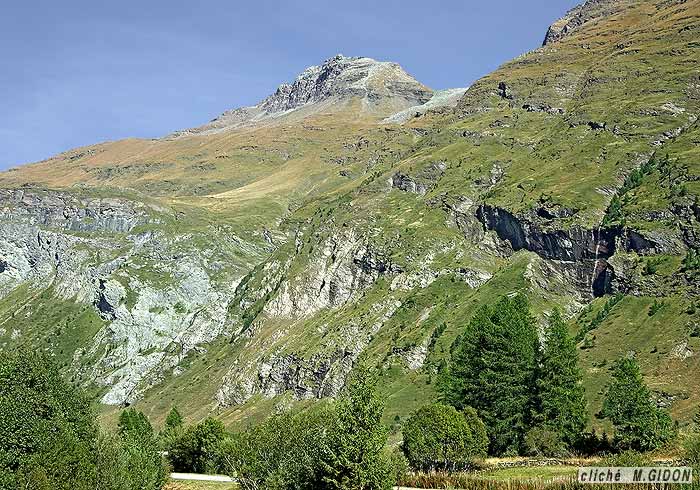 de la vallée glaciaire mais il y est particulièrement abrupt parce qu'il entaille les serpentinites de la