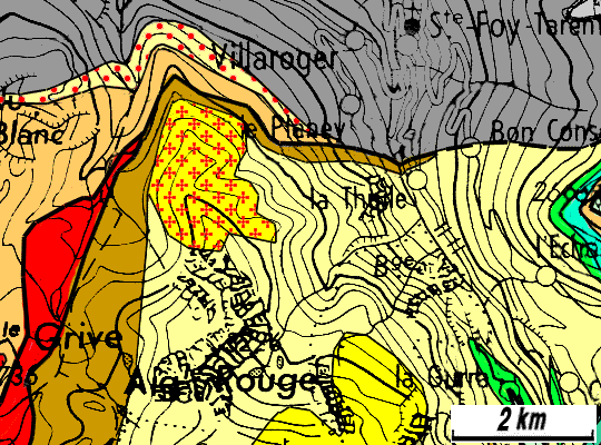 plus qu'un pendage faible, vers le nord-est, de sorte que leur présence y témoigne plutôt d'un chevauchement (chevauchement du Saut : voir la page "Grande Sassière"). |