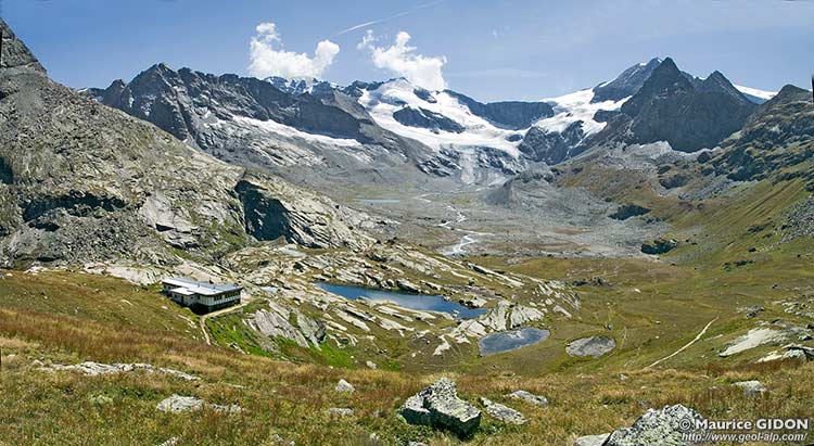 Le refuge des Évettes est construit sur un verrou glaciaire qui ferme une vaste zone déprimée occupée à la fin du XVIII ème siècle ("petit âge de glace") par la langue terminale du glacier.