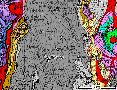 Carte géologique simplifiée des abords des Ménuires