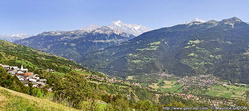Sa partie haute est constituée par la Montagne du Carroley qui appartient aux contreforts occidentaux de la montagne de Bellecôte et qui se prolonge du côté sud-occidental par le domaine de la station de La Plagne.