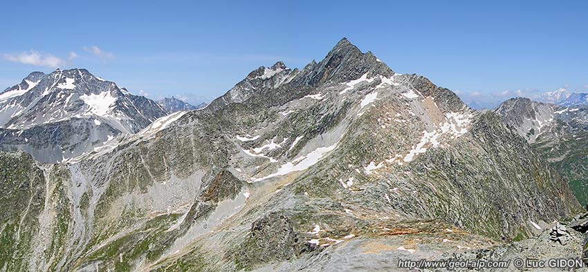 Sur toute sa longueur, l'arête principale de ce chaînon, ainsi que son versant oriental, sont essentiellement constitués par une épaisse formation gréso-conglomératique (de plusieurs centaines de mètres d'épaisseur), d'âge permien présumé, qui caractérise en fait la marge occidentale de la Vanoise orientale depuis Modane, au sud, jusqu'au vallon du Génépy, au nord.