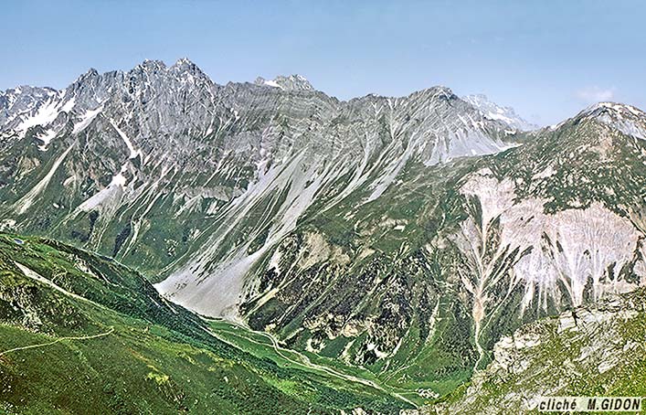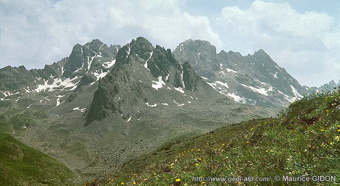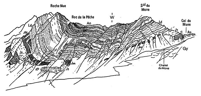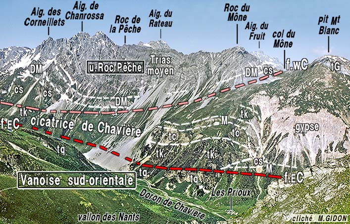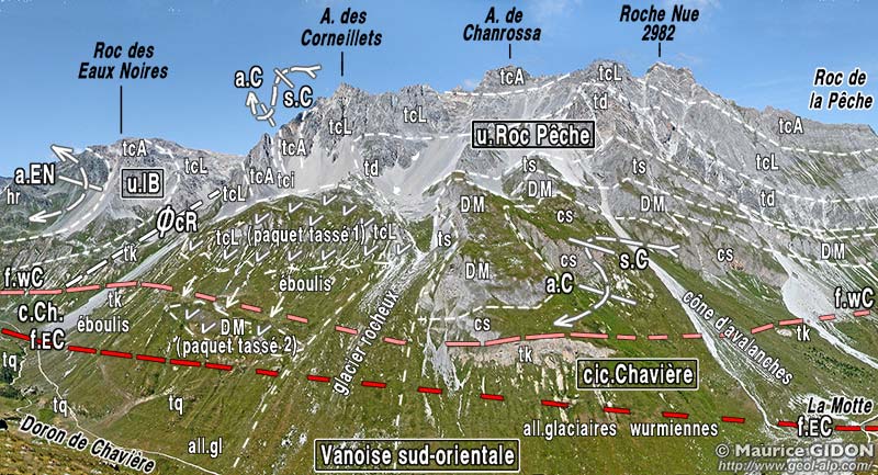 Ces couches appartiennent structuralement à une "unité du Roc de la Pêche" dont la succession stratigraphique se complète par du Jurassique et même des marbres chloriteux néo-crétacés qui affleurent au pied des abrupts, ce qui en fait une succession briançonnaise de type "classique".