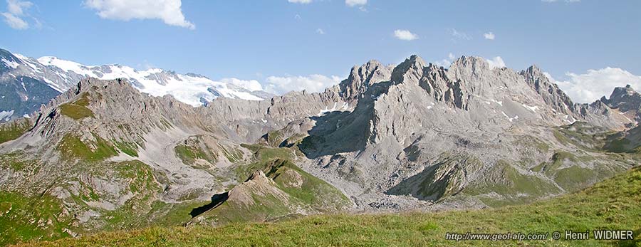 Cette crête est sculptée presque entièrement dans des calcaires et des dolomies triasiques dont les niveaux successifs ont été analysés et beaucoup datés. Ses falaises orientales (qui dominent le vallon du Doron de Chavière) montrent que ces couches sont disposées selon une belle succession stratigraphique simple, régulière et même très facile à lire à distance.