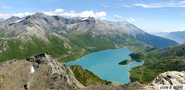 Le lac du Mont Cenis, vu du nord-ouest, depuis le sommet du Signal du Petit Mont Cenis (clichés originaux obligeamment communiqués par M. Bernard Genre).