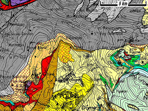 Carte géologique simplifiée des pentes orientales de Sainte-Foy