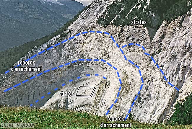 Cette épaisseur apparemment énorme est due en réalité à ce que la nappe des gypses est ployée (avec son substratum de calcaires triasiques) par un gros anticlinal en genou, déversé vers l'ouest, l'anticlinal d'Étache.
