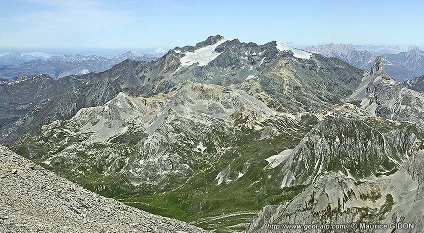 Cet ensemble très rocheux est essentiellement formé par des calcaires et des dolomies triasiques qui sont apparemment ceux caractéristiques d'une succession briançonnaise "classique". Ces couches ne forment toutefois que les hautes crêtes rocheuses et reposent, presque de tous côtés, sur un soubassement massif, souvent garni d'alpages, qui correspond à la voûte et à la retombée méridionale de la coupole de socle de la Vanoise septentrionale.
