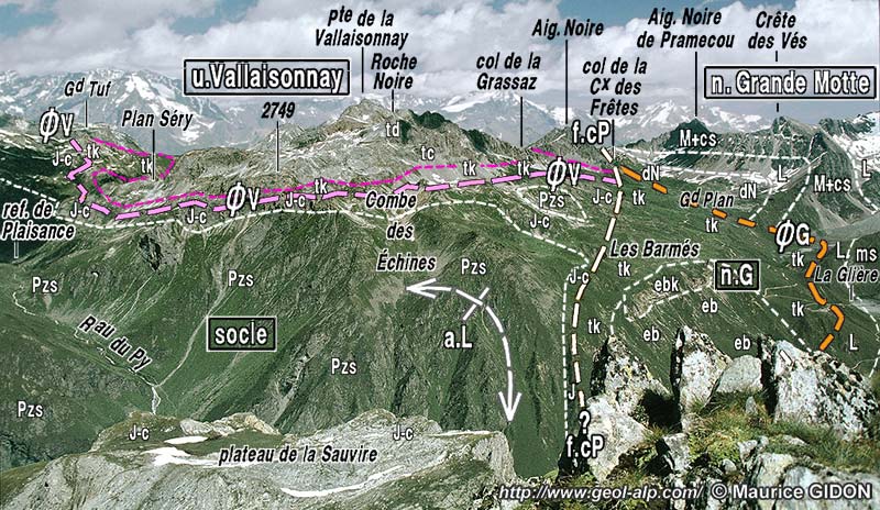 On considère donc que les calcaires triasiques des crêtes du Vallaisonnay ne sont pas la couverture stratigraphique normale du socle et qu'ils appartiennent à une unité du Vallaisonnay qui a dû au contraire venir dans cette situation par traînage
