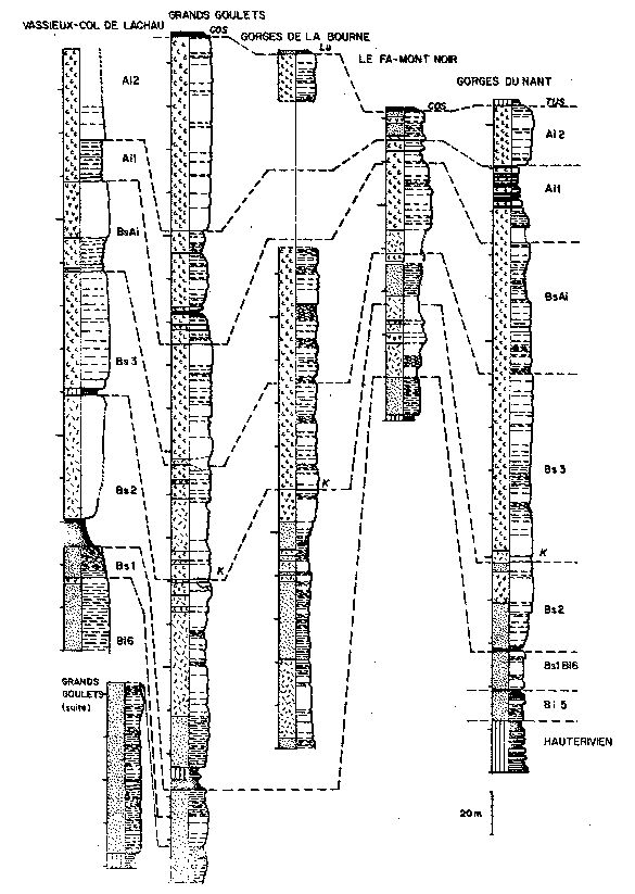 Colonnes stratigraphiques de l'Urgonien du Vercors