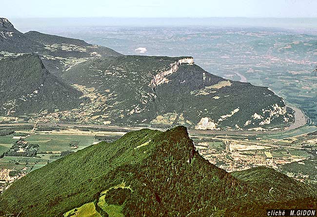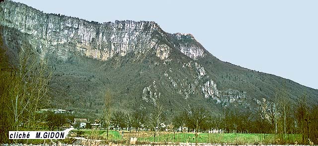 Constitué au sud par un simple épaulement situé plus de 600 m en contrebas de la barrière des falaises qui limitent vers le nord les plateaux du Vercors (voir la page "Buffe") ce petit chaînon se poursuit vers le nord-est par l'ensellement Montaud, puis par la large coupole de la Dent de Moirans, avant de se terminer par l'éperon rocheux du Bec de l'Échaillon qui s'avance vers le nord dans la dépression alluviale de l'ombilic de Moirans.