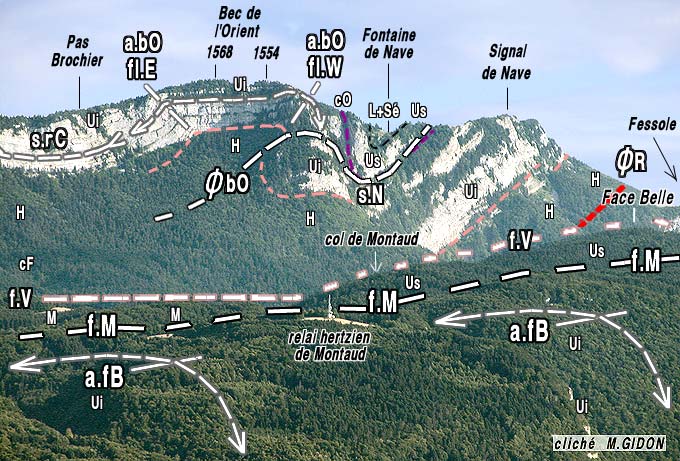 Au sud du Signal de Nave la falaise urgonienne qui limite le synclinorium d'Autrans se révèle, dans le secteur de Fessole, reposer à son tour sur une surface tectonique parallèle aux couches qui est celle, majeure, du chevauchement de Rencurel (voir la page "Écouges") : on peut donc envisager que le chevauchement du Bec de l'Orient soit une sorte de satellite de ce dernier, s'embranchant sur lui du côté oriental.