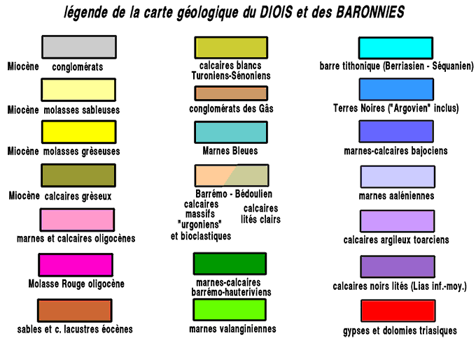 N.B. La ligne NE-SW qui passe entre Côte Blanche et La Blache correspond à la limite sud-orientale d'extension des véritables calcaires "urgoniens".