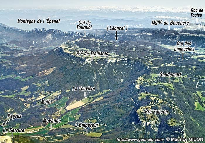 Carte géologique très simplifiée des Monts du Matin méridionaux (entre Léoncel et Gigors)