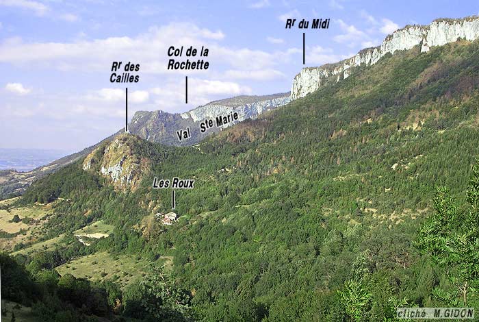 Du côté sud le vallon est fermé par le prolongement, de plus en plus rétréci de cette lame urgonienne. La route D.131 la franchit peu avant de s'engager, au col de la Croix, dans le vallon de Bouvante-le-Haut. Mais elle reprend de l'épaisseur au sud-ouest pour former le Roc de la Croix, du fait qu'on s'élève là par rapport sa surface de biseautage.