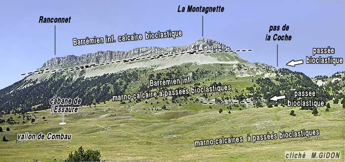Plus au sud ces plateaux n'existent plus et les falaises se font plus rares et moins continues, les niveaux d'âge Barrémo-Bédoulien étant fondamentalement représentés par des alternances marno-calcaires pélagiques : on entre alors, du point de vue géologique, dans le Diois.