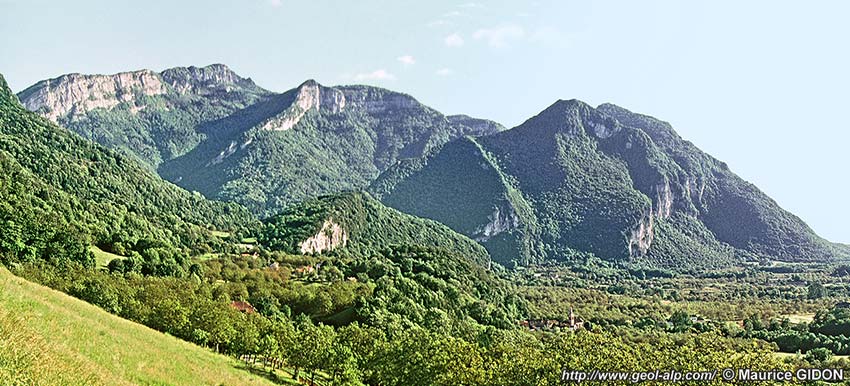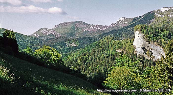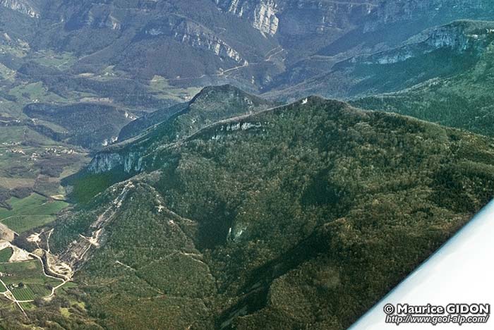Ce dernier sommet correspond à la voûte urgonienne du mont jurassien de l'anticlinal du Nant (voir la page "Cognin"), dont la voûte est compliquée par des cassures secondaires plus ou moins dirigées selon l'axe de ce pli.