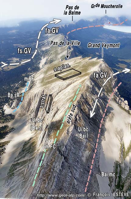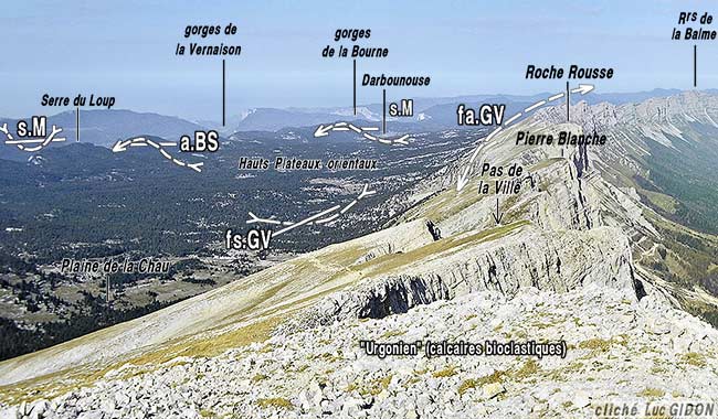 fs.GV = flexure synclinale du pli en genou* du Grand Veymont ; fa.GV = sa flexure anticlinale. |