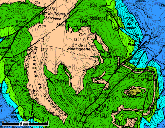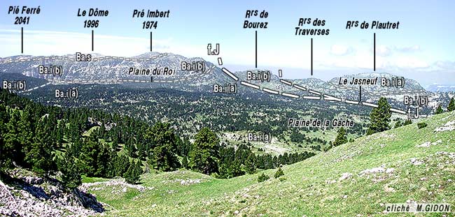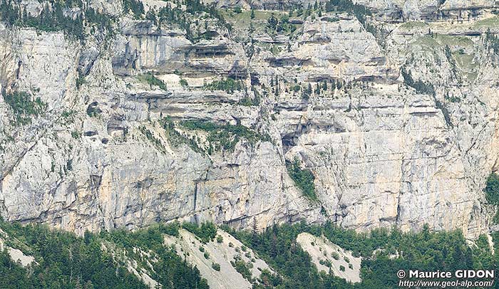Le même dispositif s'observe également dans les abrupts occidentaux de la montagne du Glandasse, où la coupe naturelle descend encore plus profondément, ce qui permet de mesurer l'énorme épaisseur (de l'ordre de 1000 m.) qu'atteignent ici les dépôts du Barrémien inférieur.