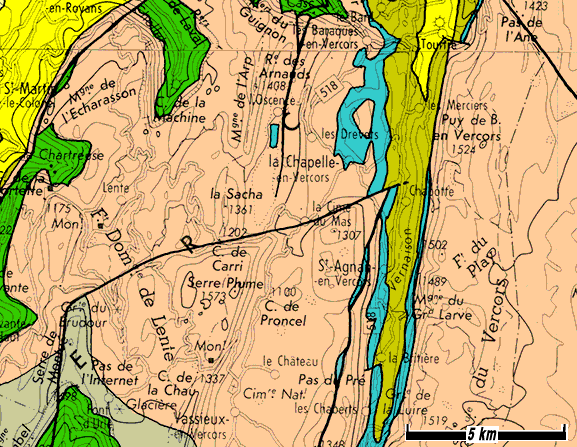 Carte géologique très simplifiée des environs de La Chapelle en Vercors