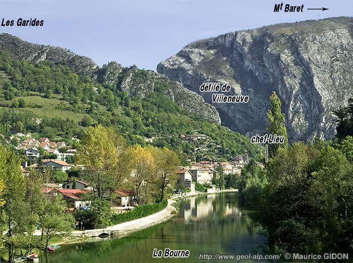 L'entaille du cours de la Bourne y met en évidence à cette occasion la charnière du bel anticlinal des Garides, dont on observe la retombée urgonienne au débouché amont en rive droite de la gorge.
