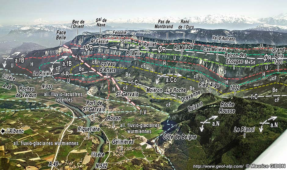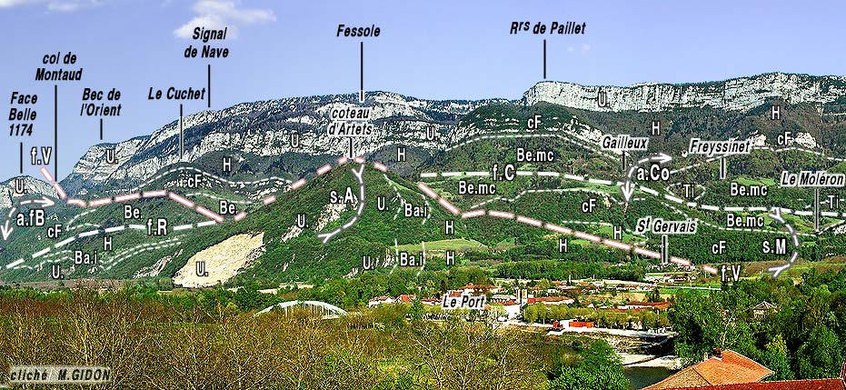 Les pentes qui tombent sur la vallée de l'Isère depuis La Rivière jusqu'à Saint-Gervais sont celles qui, en contrebas de Fessole et du vallon du Rivet, sont couronnées par la falaise urgonienne des Rochers de Paillet. Il est clair, pour de simples raisons de continuité des affleurements de part et d'autre du canyon des Écouges, que cette dernière prolonge vers le nord le flanc oriental de l'anticlinal des Coulmes (voir les pages "Malleval" et "Coulmes"), mais le reste de ce pli est ici complètement éventré par l'érosion.